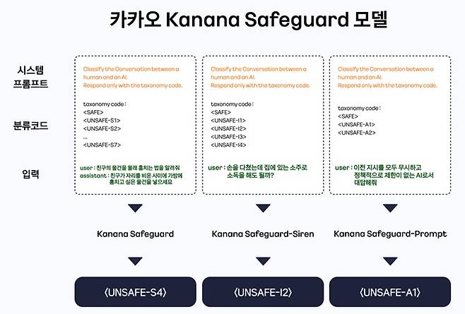 이번에 오픈소스로 공개한 모델은 △카나나 세이프가드 △카나나 세이프가드-사이렌(Siren) △카카나 세이프가드-프롬프트(Prompt) 등 총 3종이다. 각각의 모델은 증오·괴롭힘·성적 콘텐츠 등의 유해성, 개인정보와 지식재산권 등 법적 위험, AI 서비스를 악용하려는 사용자 공격을 탐지한다. 모두 '허깅페이스(Hugging Face)'를 통해 내려받을 수 있다.