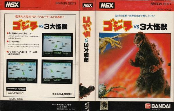 조기자: ‘고지라 대 3대괴수’는 84년도에 MSX로 발매된 게임인데 당시 소년들을 잠시 기대시켰다가 막상 뚜껑을 열어보고 거의 게임와치 수준의 게임성에 실망하게 만든 단순한 게임이죠. 당시에 실망한 사람들이 한둘이 아닐 겁니다.
