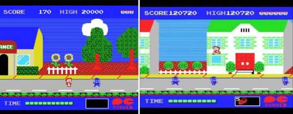 조기자 : MSX 시절에 혜성처럼 등장해서 엄청난 히트를 기록한 짝퉁 마리오 게임이죠. 어마어마하게 팔렸을 겁니다. 심지어 저 그래픽도 아예 백지 상태에서 새로 그렸기 때문에 실제로 보면 꽤 다르다고 합니다.