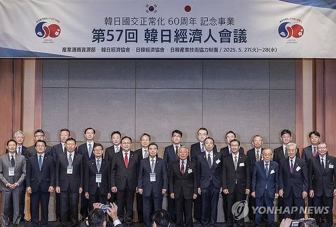 앞줄 왼쪽부터 조현준 효성그룹 회장, 박승희 삼성전자 사장, 신동빈 롯데그룹회장, 윤진식 한국무역협회장, 정인교 통상교섭본부장,김윤 한일경제협회 회장, 아소 일한경제협회 부회장, 미즈시마 코이치 주한 일본대사, 코지 아키요시 아사히그룹 홀딩스 회장 및 일한경제협회 차기회장. 2025.5.27