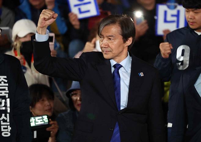 조 전 대표는 자녀 입시 비리 등 혐의로 징역 2년을 확정받고 수감 중이다. 만기 출소 예정일은 2026년 12월 15일이다. 배우자인 정경심 전 동양대 교수는 최근 페이스북 배경 사진을 '더1찍 다시 만날, 조국'이라는 문구가 담긴 사전투표를 독려하는 이미지를 올리기도 했다.
