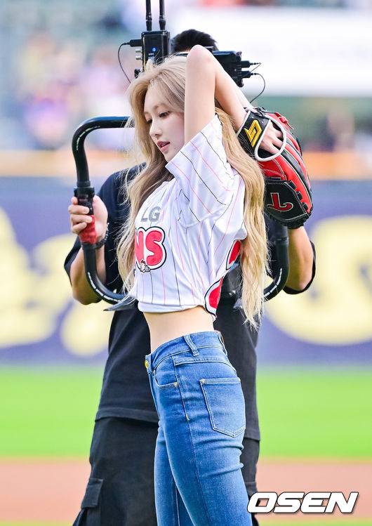 경기에 앞서 아이브 가을이 시구를 하고 있다. 2025.05.27 / soul1014@osen.co.kr
