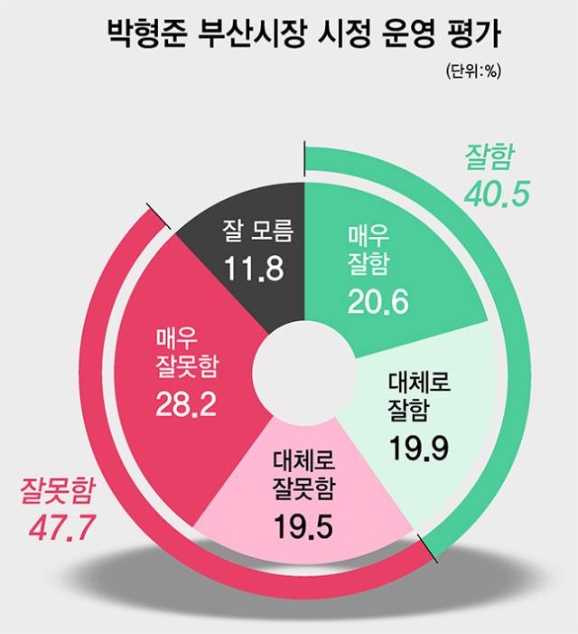 박형준 시정 운영 “잘한다” 40.5% vs “잘 못한다” 47.7% [부산일보 여론조사]