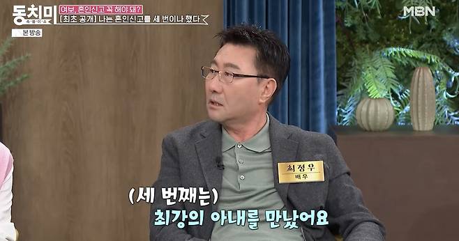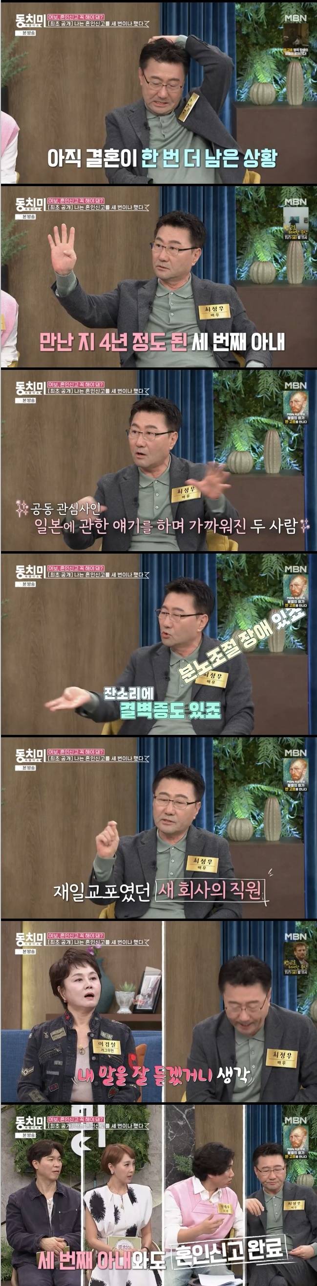 당시 최정우는 "공과 사가 있는데 그렇게 자랑할 만한 사가 아니다"며 혼인신고를 세 번 하게 됐다고 입을 열었다.