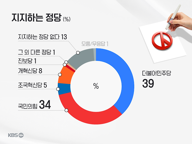 ■ 정당 지지도...더불어민주당 39%·국민의힘 34%·개혁신당 8%
