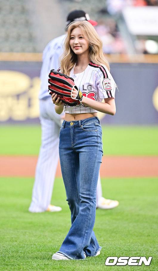 경기전 시구 마친 아이브 가을이 미소 짓고 있다. 2025.05.27 / soul1014@osen.co.kr