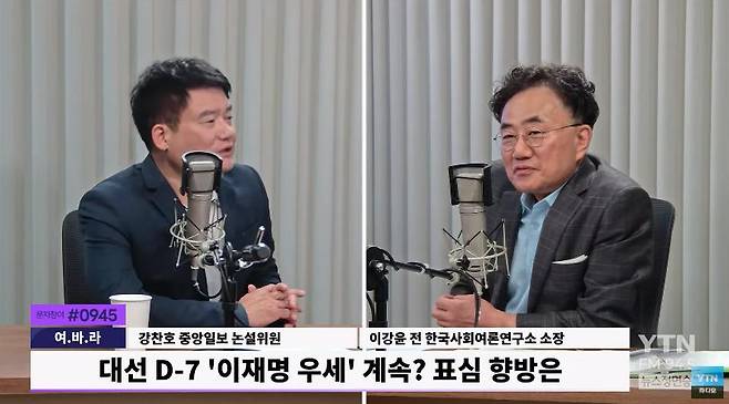 ◆ 신율 : 중앙일보 강찬호 논설위원은 지금 1층입니다. 있으면 올라오실 텐데 여론조사 지금 많이 나오죠. 그중에서 하나 소개해 주시죠.