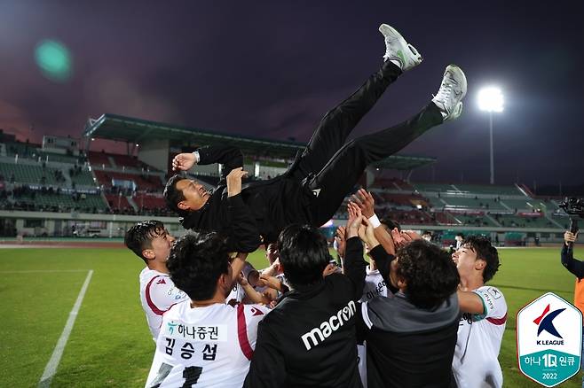 이어 2022시즌은 시즌 중반 어려움을 이겨내고 K리그2 2위를 기록, 승강 플레이오프에서 김천상무에 1, 2차전 모두 승리하며 8시즌 만에 1부 승격에 성공했다.