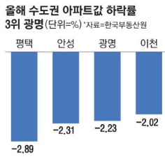 이처럼 대단지 입주가 줄줄이 예정되며 광명 아파트 전셋값은 올해에만 무려 5.56% 떨어졌다. 수도권에서 가장 큰 폭의 하락세다.