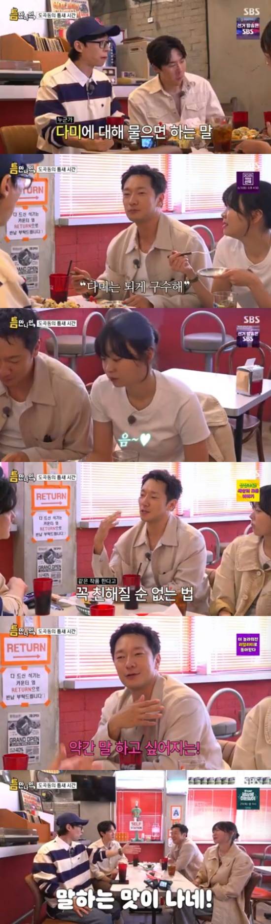 '틈만 나면'으로 예능 첫 출연을 한 김다미는 "저는 오늘 메이크업을 할 때부터 집에 가고 싶었다"면서 웃었고, 유연석은 "저도 예능을 처음할 때는 그런 두려움이 있었던 것 같다"고 이해했다.