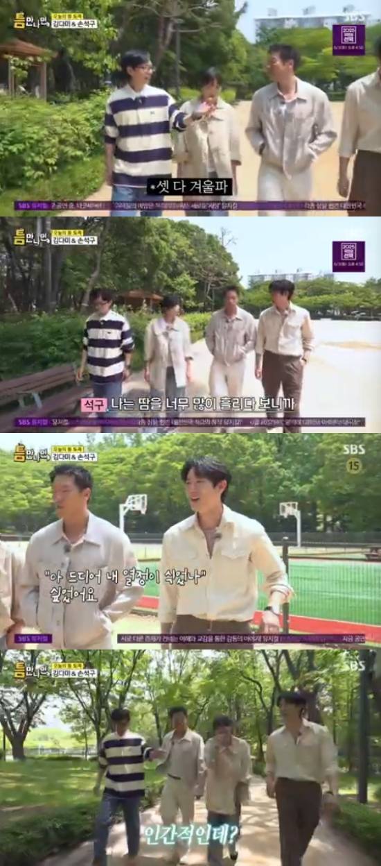 27일 방송된 SBS 예능 프로그램 '틈만 나면,'에서는 배우 손석구, 김다미가 '틈 친구'로 출연해 도곡동 일대를 돌며 '틈 주인'에게 행운을 선물했다.