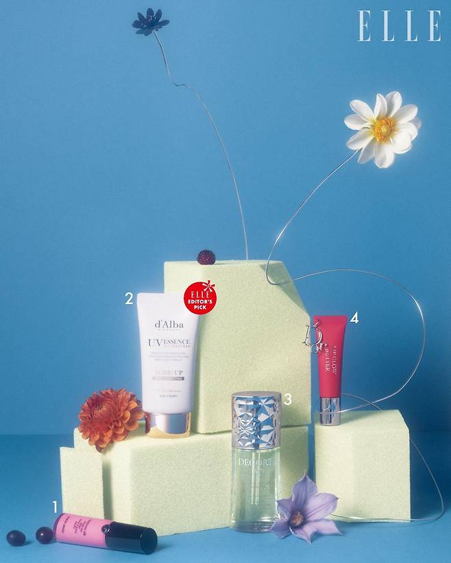 1 밝고 경쾌한 핑크빛을 띠고 있어 사랑스러움을 배가해 주는 블러셔. 산뜻한 발림성을 지녀 손으로 대충 터치해도 베이스 메이크업이 밀리거나 무너지지 않는다. 실크에서 느껴지는 우아한 광택이 피부에 감도는 루미너스 실크 치크 틴트 샤인, 53S 카즈믹 핑크, 6만6천원, Armani Beauty.2 수분 에센스를 듬뿍 함유한 텍스처가 피부 결을 따라 놀랍도록 촉촉하게 펴 발린다. 생기 넘치는 핑크빛 컬러가 피부에 자연스럽게 안착되면서 칙칙한 안색을 ‘뽀샤시’하게 밝혀줘 파데 프리용 선크림을 찾는 이들에게 추천! 여기에 안티에이징 효과까지 있으니 이 제품이야 말로 선크림 계의 ‘N잡러’인 듯. 달바 비건 워터풀 핑크 톤업 선크림, 3만4천원, D’Alba.