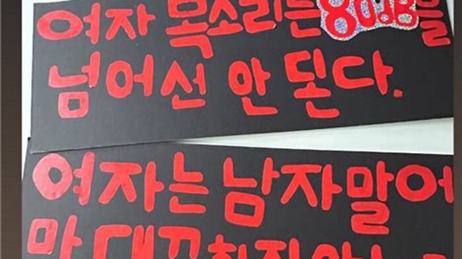 "여자 목소리는 80데시벨 넘어선 안돼"…남고생들 피켓 논란