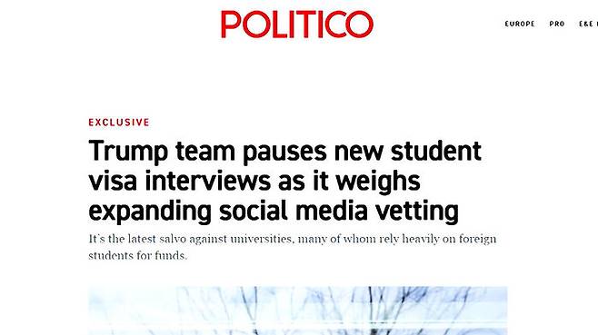 미국에 유학하려는 학생에 대해 소셜미디어 심사를 의무화하는 방안을 미 당국이 검토하고 있다고 폴리티코가 외교 전문을 입수해 보도했습니다.