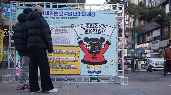 | ▲ 노조법 개정안에 대한 취지를 설명하는 현수막이 설치되어 있다. |