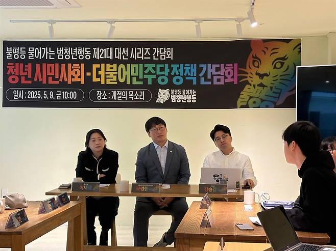 | ▲ 불평등 물어가는 범청년행동은 9일 오전 이대 근처에 위치한 ‘계절의 목소리’에서 더불어민주당 ‘진짜 대한민국’ 청년본부와 정책 간담회를 진행했다. |