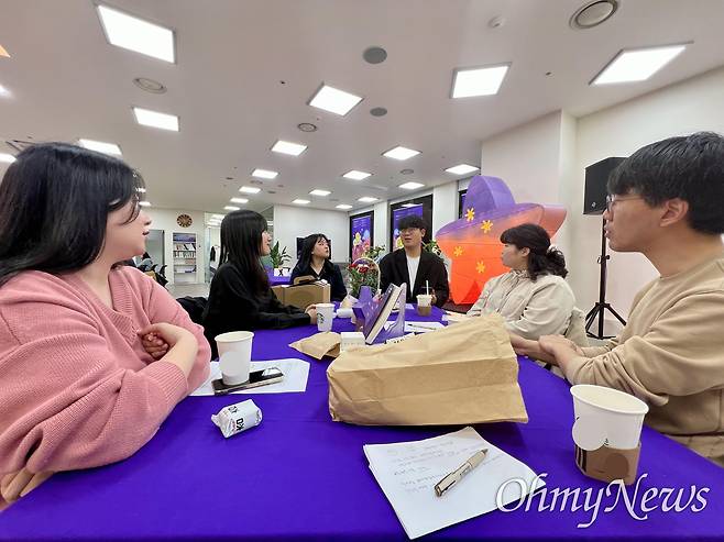 <오마이뉴스>는 민주노총과 함께 지난 4월 30일 노동절 전야에 오픈채팅방을 열어 청년들의 일터 안팎에서의 노동과 관련한 고민을 청취하고, 이들 중 청년 5명을 모아 오프라인 집담회를 열고 오는 6월 대선에서 청년들이 원하는 '청년 노동' 의제를 모았다.