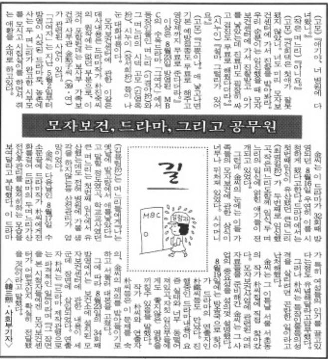 | ▲ 1990년 9월 6일 자 <조선일보>에 실린 기사 "모자보건, 드라마, 그리고 공무원" |