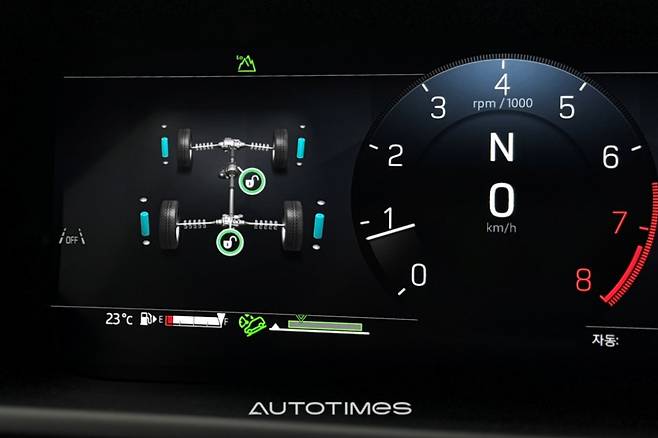 온로드에서는 차체를 수평에 가까운 상태로 유지하며, 오프로드에서는 노면 변화에 신속하게 대응한다. 이처럼 지능적으로 차의 움직임을 분석하고 피칭 및 롤링 제어 시스템을 통해 탁월한 차체 거동과 정밀한 주행 성능을 발휘할 수 있다. 온로드에서도 오프로드와 마찬가지로 흔들림을 최소화하고 모두에게 기분 좋은 승차감을 전달하는 일등공신 역할을 한다.