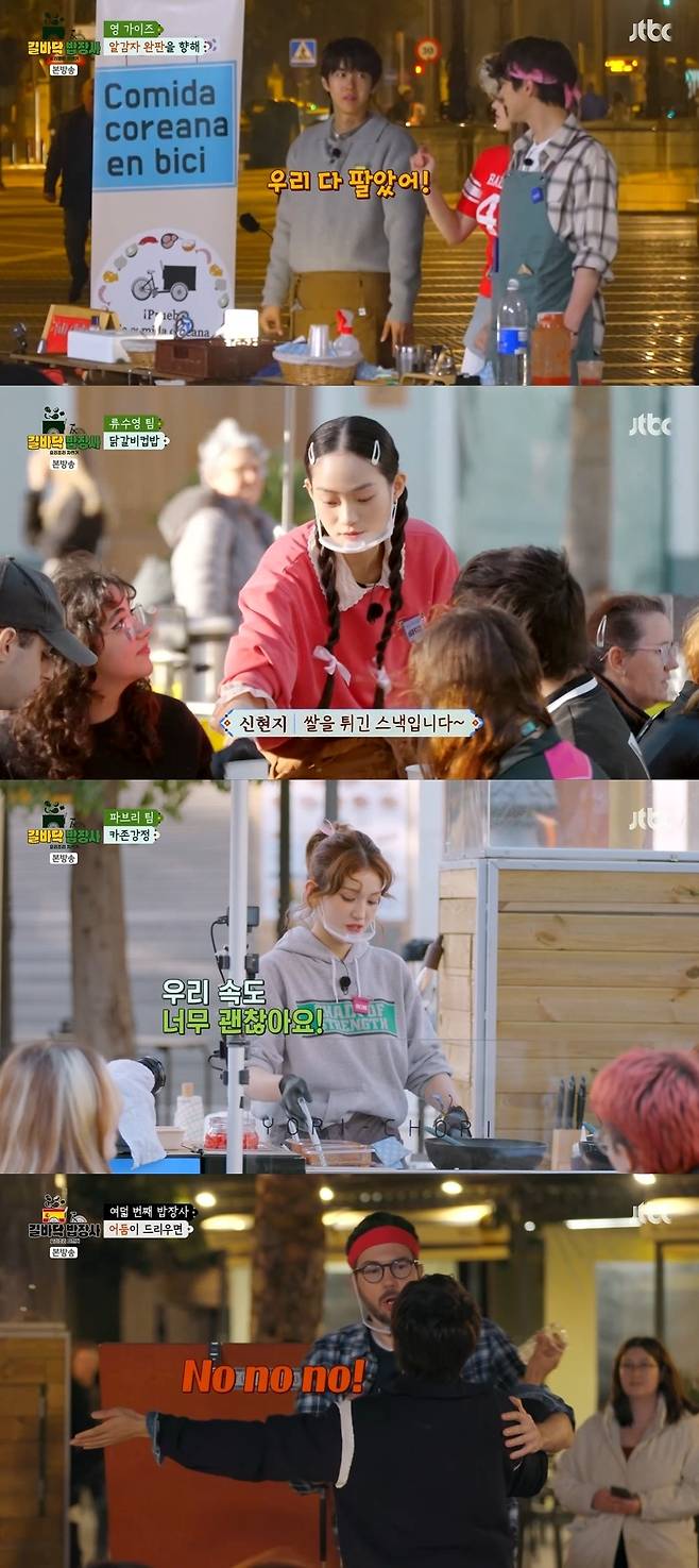 류수영 팀과 파브리 팀의 대결은 2일 차 장사를 진행했던 곳이자 유동 인구가 많은 카디스 시청 앞 광장에서 펼쳐진 가운데 팀을 이적한 신현지와 전소미가 눈길을 끌었다. 닭갈비 컵밥에 올릴 콘치즈를 위해 야외 특훈을 하며 요리 솜씨를 뽐냈던 신현지는 실전에서 거센 바람이 불자 버너의 3면을 막아 화력을 지키는 야무진 면모를 드러냈다.