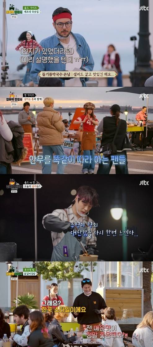 27일 방송된 JTBC '길바닥 밥장사'에서는 영 가이즈 팀 황광희, 신현지, 배인혁, 전소미가 레시피 대마왕 류수영, 미쉐린 스타 셰프 파브리가 뭉친 올드 가이즈 팀을 상대로 값진 승리를 거뒀다.