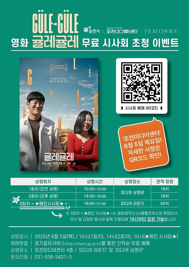 포천미디어센터가 6월 5일 포천미디어센터 4층 '미디어 라운지'와 '미디어 상영관'에서 영화 '귤레귤레' 시사회를 개최한다.