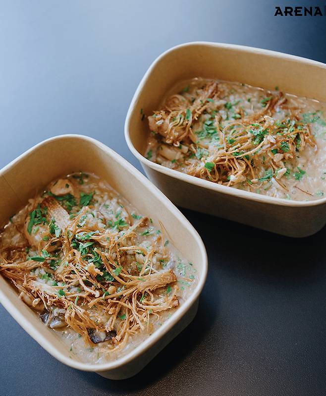 “전부 저희 매장에서 쓰는 재료로 만들 거예요.” 치킨 머슈룸 리소토는 내슈빌 핫치킨 샌드위치와 전혀 다른 음식이지만, 특별히 새로운 재료를 준비하지 않아도 충분히 만들 수 있었다. 쌀, 닭 가슴살, 양파를 볶은 뒤, 그레이비소스를 만들 때 쓰는 닭 육수를 여러 차례 부어가며 졸이면 끝. 여기에 새송이버섯, 고기느타리버섯, 팽이버섯을 넣으면 향과 식감이 한층 다채로워진다. 흐뭇한 표정으로 직원들이 숟가락을 뜨는 모습을 지켜보던 김지훈태 대표에게 ‘좋은 스태프 밀’에 대해 묻자 그는 이렇게 답했다. “일단 맛있어야죠. 기왕이면 다 같이 먹으면 좋고요. 그래야 더 맛있잖아요.”