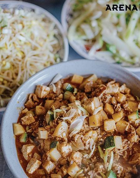 이날 메인 메뉴는 차돌강된장이었다. “대구에서 처음 음식을 배울 때였어요. 사수가 종종 점심시간에 해주던 메뉴였는데, 저는 그날을 제일 좋아했어요.” 김신명 대표가 차돌강된장을 고른 건 단순히 추억 때문만은 아니다. 마차이짬뽕 메뉴판에는 볶고 튀긴 음식들이 주를 이룬다. 평소 기름지고 자극적인 음식을 자주 접하다 보니, 직원 식사만큼은 담백한 음식으로 챙기려 한다고. 차돌강된장은 그 자체로도 훌륭하지만 콩나물볶음, 무나물무침을 곁들여 삶은 양배추에 싸 먹으면 더 맛있게 즐길 수 있다. 직원들이 식사하는 동안에도 매장 밖에는 기다리는 손님이 있었다. 그중에는 ‘아까 사장님이 먹던 메뉴’를 궁금해할 손님도 있을 것 같았다.