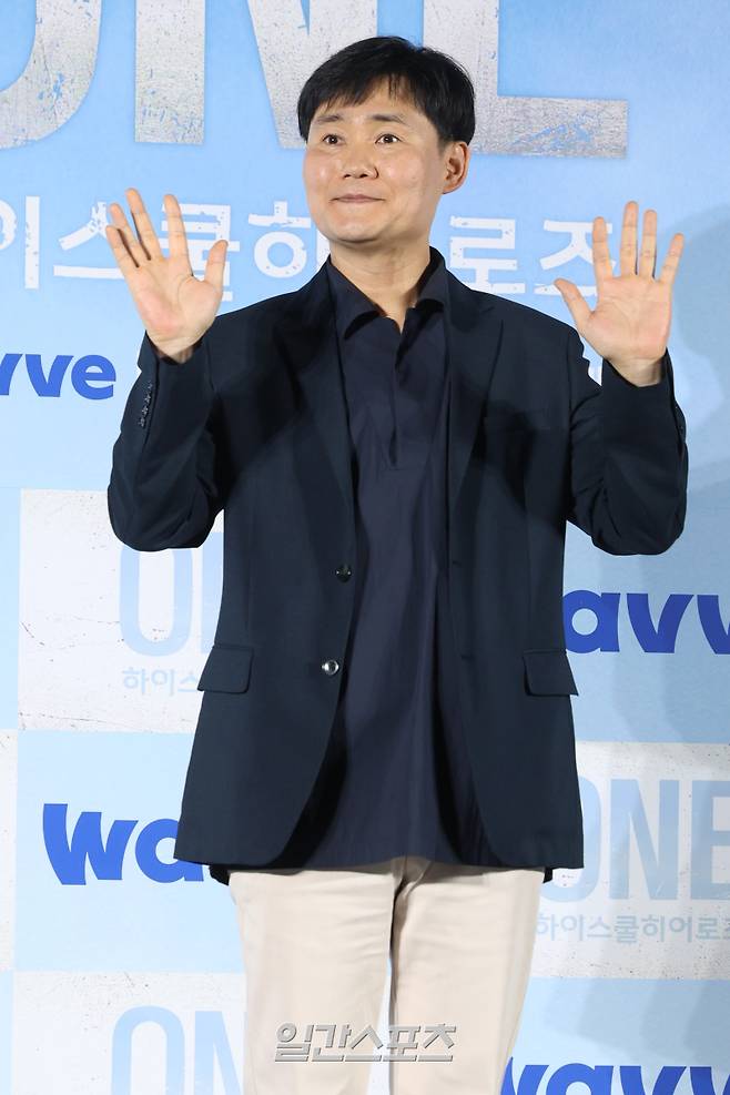 이성태 감독이 28일 오전 서울 광진구 롯데시네마 건대입구점에서 열린 웨이브 오리지널 'ONE : 하이스쿨 히어로즈' 제작발표회에 참석해 포즈를 취하고 있다.