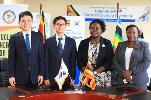 한국수력원자력이 27일(현지시간) 아프리카 우간다 엔테베에서 우간다와 신규 원전 부지 평가 용역 계약을 체결했다.