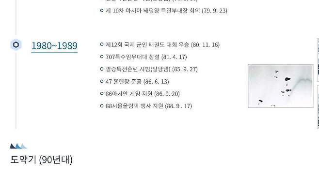 이 가운데 ‘발전기(70~80년대)’의 주요 내용으로 ‘전두환 대통령 부대 방문(85년 4월 6일)’이 ‘12·3 비상계엄’ 사태 이후로도 그대로 기술돼 있었다. 이 대목은 12·3 비상계엄 사태 이전부터 부대 홈페이지에 게재돼 논란이 제기됐다.