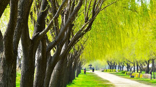이에 따라 전국 최장인 2.5km의 버드나무길이 조성됐습니다.