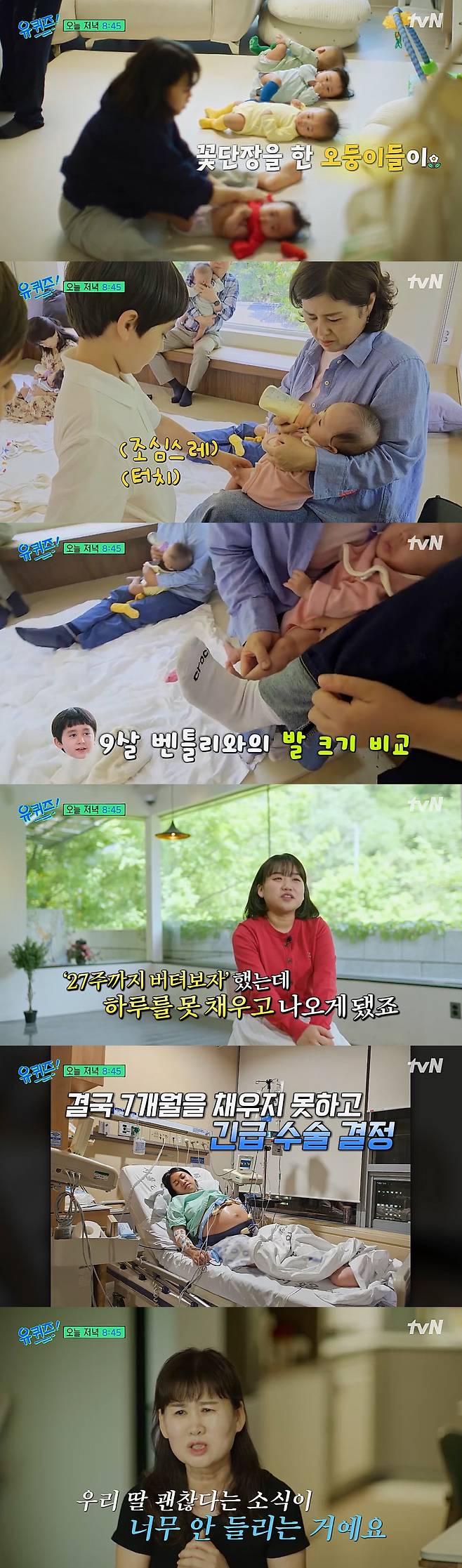 한편 키 151cm의 작은 체구로 다섯 아이를 품었던 엄마 사공혜란은 "27주까지 버텨보자고 했는데 하루를 못 채우고 나오게 됐다"며 오둥이 출산 비하인드를 공개했다.