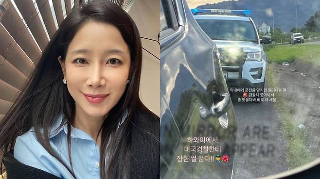지난 27일 김하영은 개인 계정에 사이드미러에 비친 경찰차를 찍어 게시했다. 그는 "하와이에서 미국 경찰한테 잡히 썰 푼다"라며 "막내에게 운전을 맡기면 일어나는 일. 경찰차 쫓아와서 총 맞을까 봐 바로 차 세움"이라고 전했다.