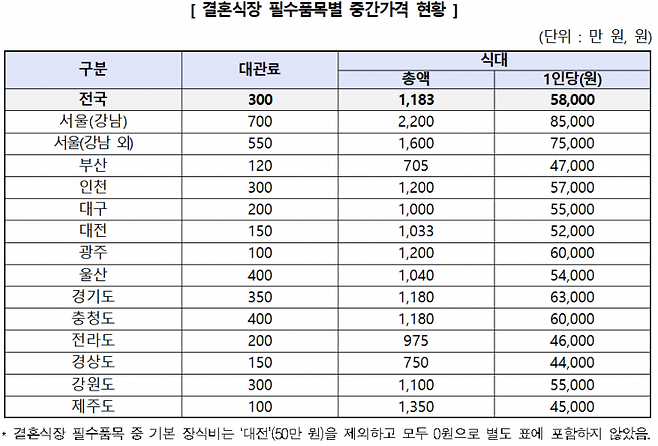 서울 강남, 식장·스드메·식대 비용 가장 비싸