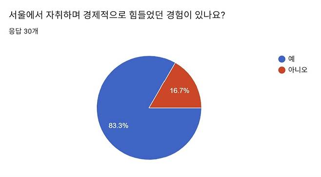 | ▲ 서울에서 자취하는 청년 30명 대상 설문조사한 결과 |