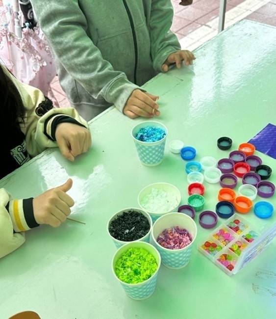 정해진 틀은 없었다. 아이들은 각자의 시선으로 바다를 상상하고 표현했다. 어떤 아이는 반짝이는 맑은 해변을 만들었고, 또 어떤 아이는 파란 조각들을 겹겹이 쌓아 푸른 심해를 표현했다. 병뚜껑이라는 제한된 공간 안에서 아이들의 상상력은 끝없었고, 아이들의 손끝에서 바다는 무한히 확장되었다.