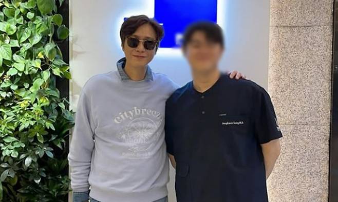 공개된 사진 속 고지용은 데님셔츠와 스웨트셔츠를 레이어드해 깔끔한 무드를 자아낸다. 선글라스를 쓴 그는 의사와 어깨동무를 하며 활짝 미소를 지었다.