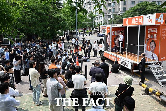 이날 이 후보는 유세를 마친 뒤 취재진과 만나 지난 27일 열린 토론회에서 여성 신체와 관련한 원색적 표현을 인용해 발언해 논란이 된 것에 대해 "불편할 국민이 있을 수 있다는 것을 알고 있었고 그에 대해 심심한 사과를 드린다"고 전했다.