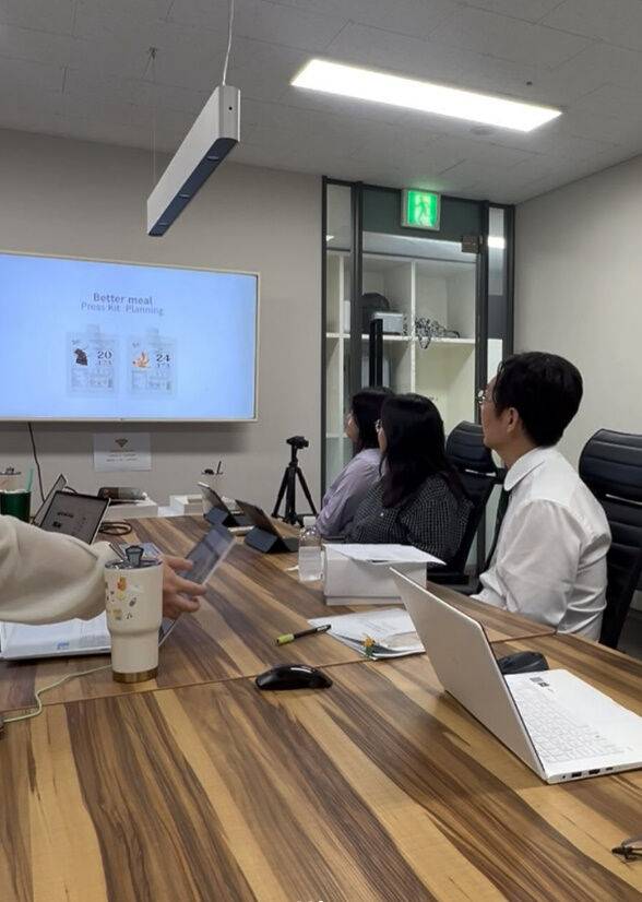 사진 속 김영철은 진지한 자세로 제품 개발에 참여하는 모습이다.