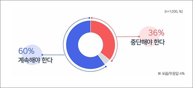 만약 민주당 이재명 후보가 대통령이 된다면 진행 중인 재판을 어떻게 할지에 대해서는 '재판을 계속해야 한다'는 응답이 60%로, '재판을 중단해야 한다'는 응답 36%보다 24%P 많았습니다.