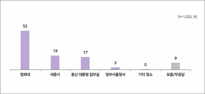 새 대통령 집무실로는 청와대가 좋다는 응답이 52%로 가장 높았고, 세종시, 용산, 정부서울청사가 뒤를 이었습니다.