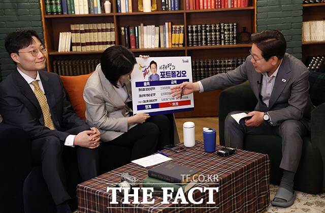 이 후보는 이날 진행된 유튜브 라이브 방송을 통해 자신의 증권 계좌를 인증하며 '코스피 200'을 추종하는 코스피 200 ETF에 2000만 원, '코스닥 150'을 추종하는 ETF 2000만 원을 매수했다고 밝혔다.