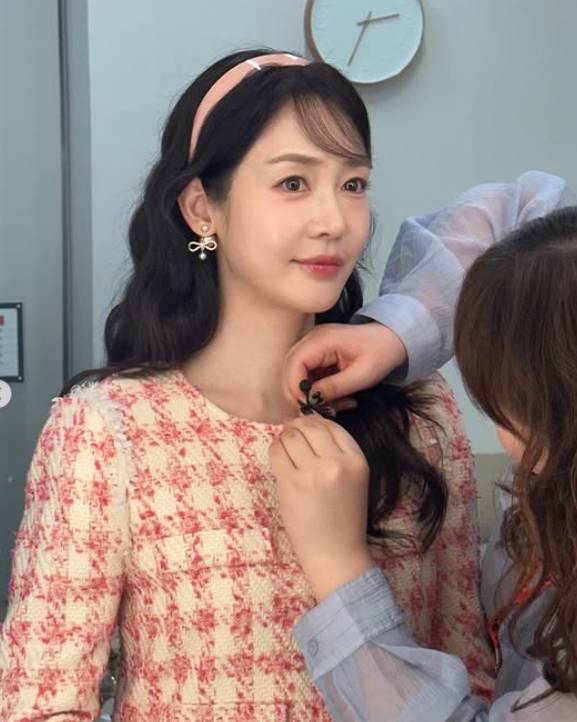 공개된 사진 속 성유리는 핑크색 머리띠와 트위드 재킷으로 러블리한 패션을 선보였다. 웨이브 헤어스타일과 상큼한 메이크업, 리본 모양의 귀걸이가 성유리의 미모를 돋보이게 만들었다.