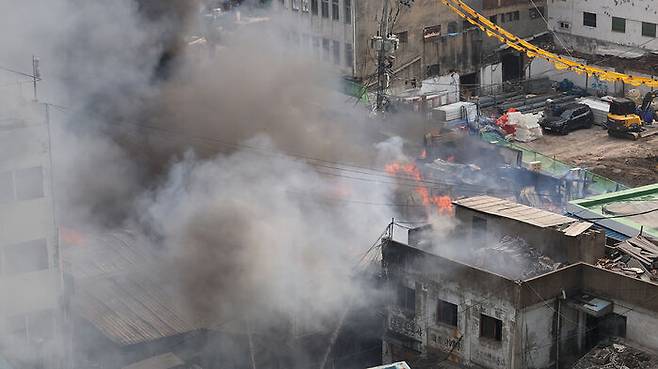 오늘(28일) 오후 3시 25분 서울시 중구 산림동의 한 노후 상가 건물에서 불이 나 소방 당국이 진화 중입니다.