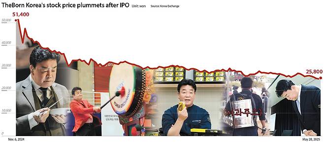 The success story peaked that year as TheBorn Korea went public on Nov. 6, 2024. Analysts hyped up the company. Hanwha Research Center gave it a positive outlook, calling Paik the “Korean version of Gordon Ramsay,” while IR Kudos analyst Park Jun-hyung said the company had high growth potential in March.