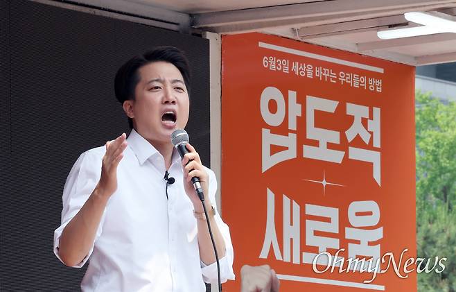 | ▲ 여의도 유세 나선 이준석 후보 전날 대선후보 TV 토론 중 여성 신체에 대한 폭력적 표현을 언급한 이준석 개혁신당 대선 후보가 28일 서울 영등포구 여의도공원에서 열린 유세에서 지지를 호소하고 있다. |