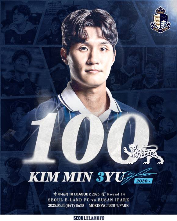 [스포츠조선 박찬준 기자]서울 이랜드FC가 31일 열리는 부산 아이파크와의 홈경기에서 김민규의 구단 통산 100경기 기념식을 개최한다.