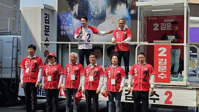 조항욱 태안 총괄선대위원장을 비롯해 정광섭 충남도의회 부의장, 윤희신 도의원, 김진권 전 군의회 의장 등 국민의힘 소속 인사들도 연단에 올라 김 후보 지지를 호소하며 릴레이 발언을 이어갔다.
