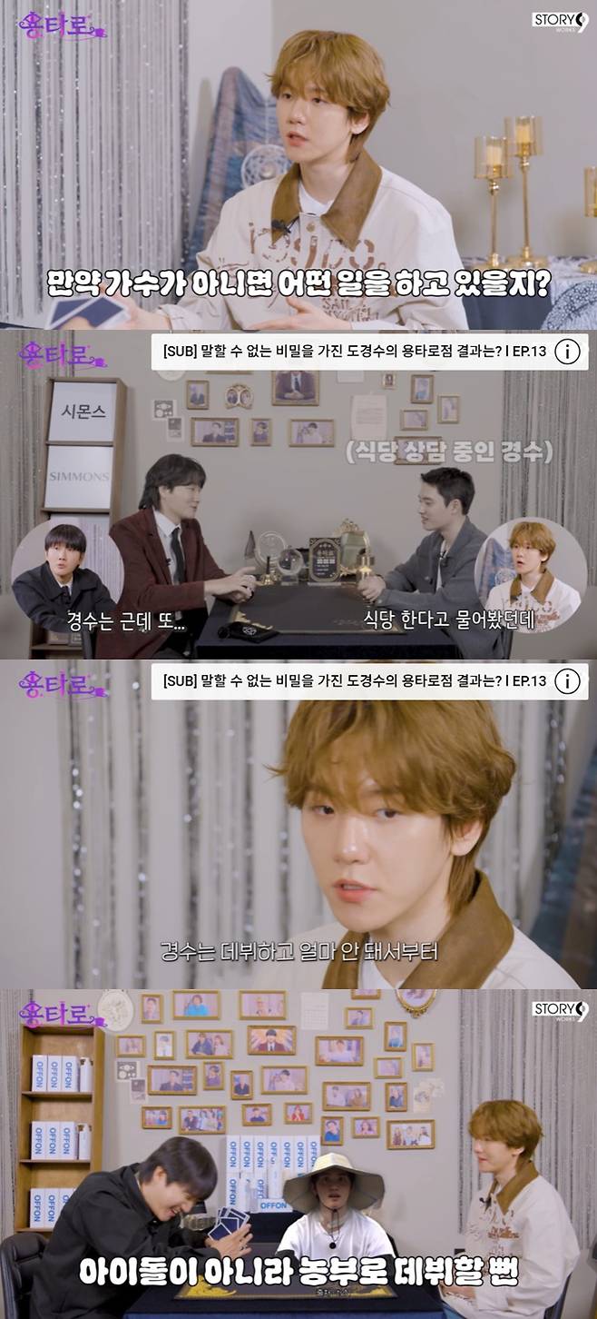 해당 영상에서 백현은 "가수를 떠나서 만약 또 다른 일을 하고 있다면 나중에 무슨 일을 하고 있을까"라며 가수를 오래 할 수 있을지 타로점을 봤다.